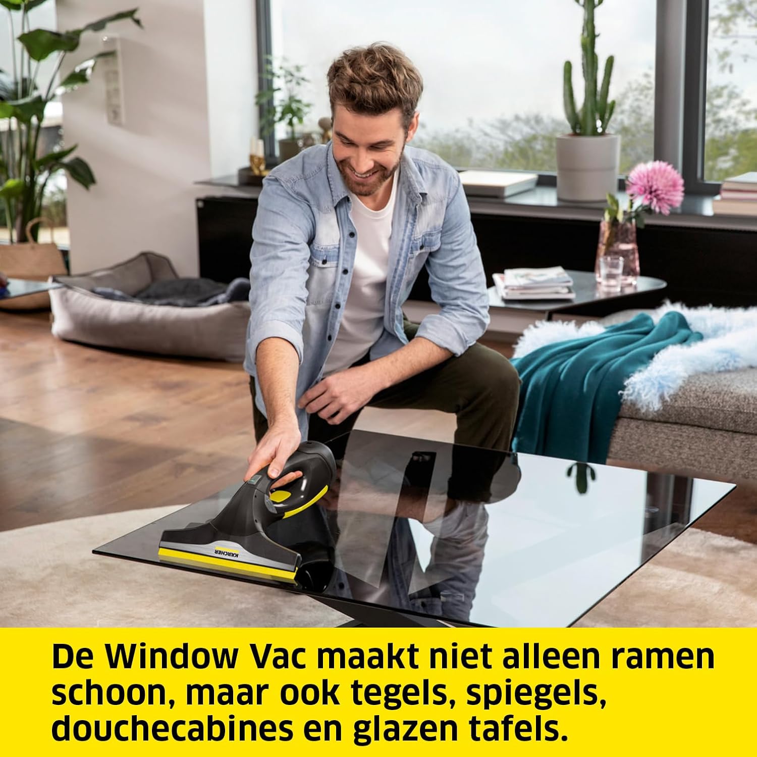 Kärcher Window Vac ideaal voor ramen, spiegels en tegels.