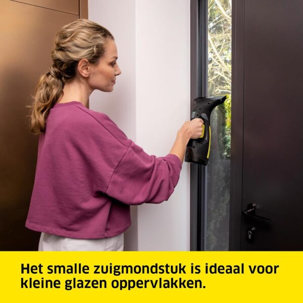 Twee zuigmonden: De grote zuigmond van 280 mm is geschikt voor grotere oppervlakken zoals ramen. De kleine zuigmond (170 mm) is ideaal voor ramen met latwerk, muntin-ramen en smalle ruimtes