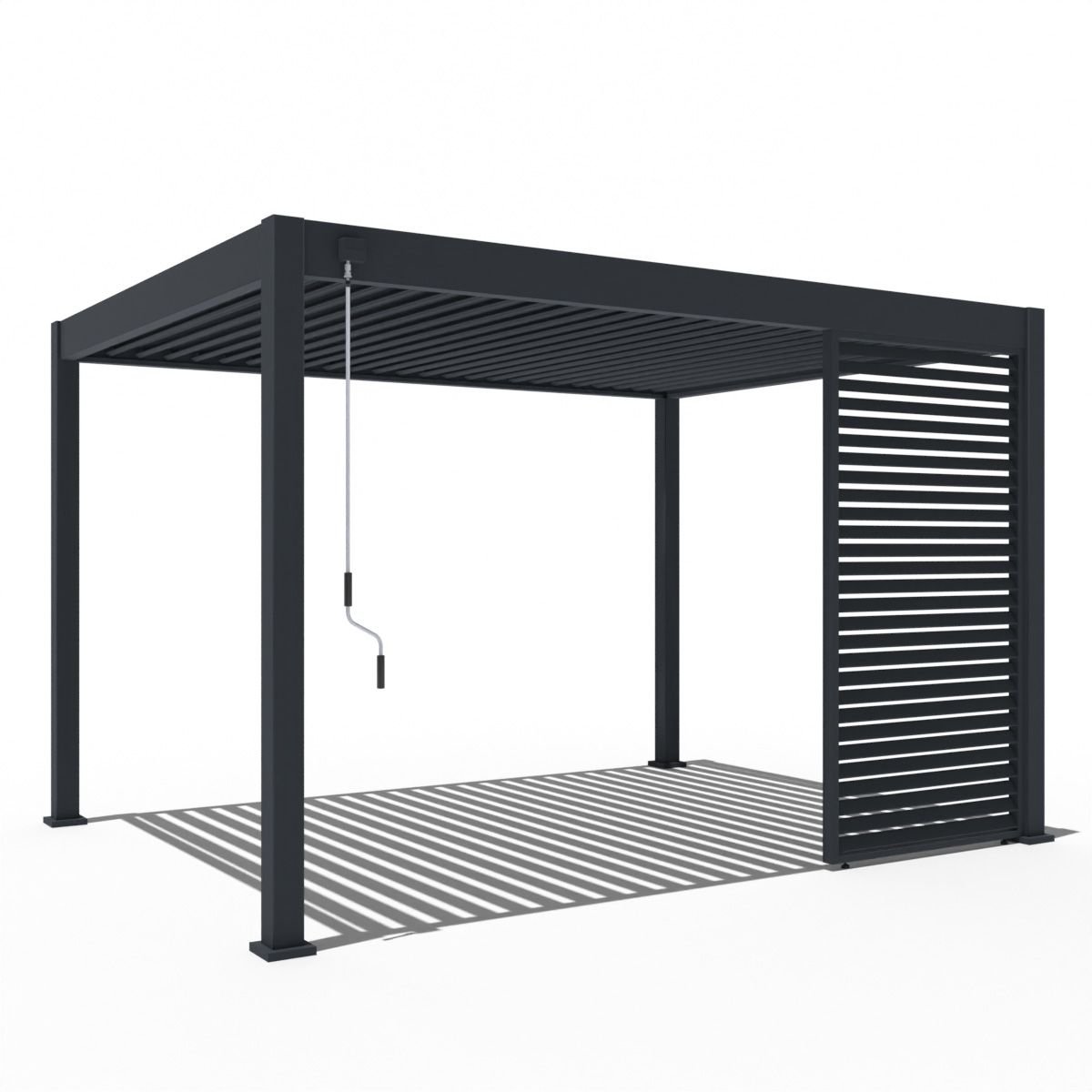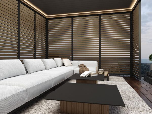 Door het unieke ontwerp bevestig je het zijscherm volledig geïntegreerd in jouw pergola. Met de meegeleverde handleiding is het monteren van het kantelbare shutter paneel zeer eenvoudig. Het paneel is gemaakt van aluminium. De panelen worden per stuk geleverd. Je hebt 3 panelen nodig om een kant van 3 meter volledig af te dekken. Deze panelen zij modulair. Dit houdt in dat je de panelen op elke kant kan plaatsen zoals je dit wilt.