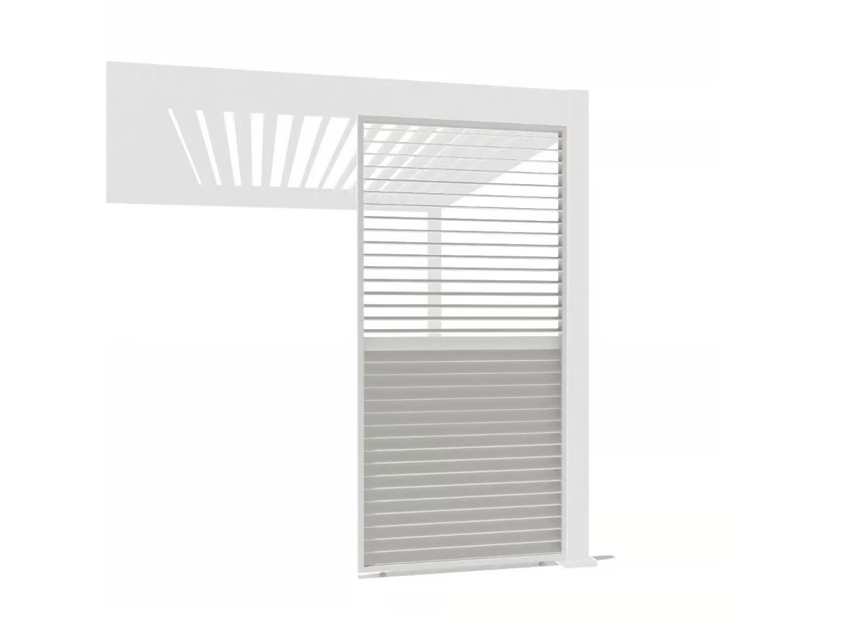 Daarnaast zijn de lamellen van dit shutter paneel handmatige te verstellen zodat u altijd in comfort kunt genieten van uw overkapping. De vaste middenlat maakt het mogelijk de bovenste en onderste lamellen van de horizontale lamellenwand onafhankelijk van elkaar te bedienen. Hierdoor kan de lichtinval en schaduw naar wens worden ingesteld.