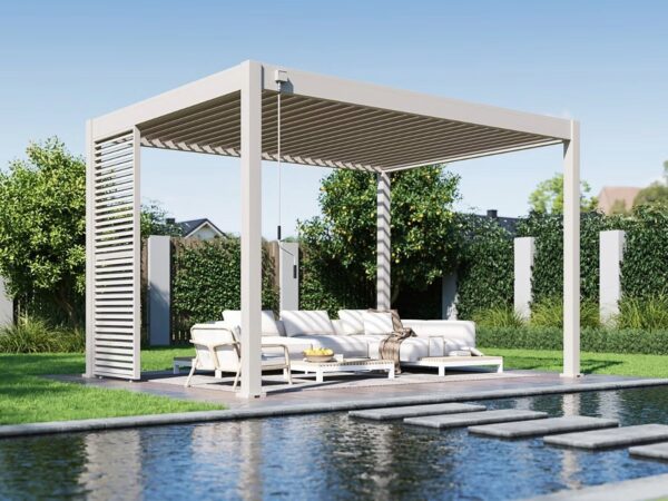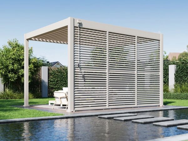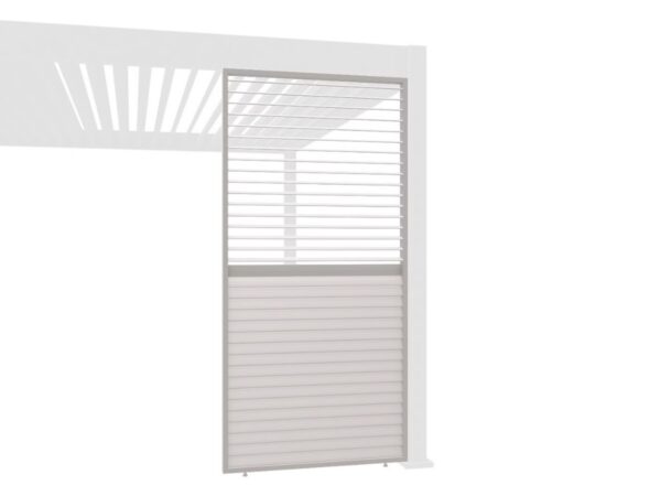Door het unieke ontwerp bevestig je het zijscherm volledig geïntegreerd in jouw pergola. Met de meegeleverde handleiding is het monteren van het kantelbare shutter paneel zeer eenvoudig. Het paneel is gemaakt van aluminium.