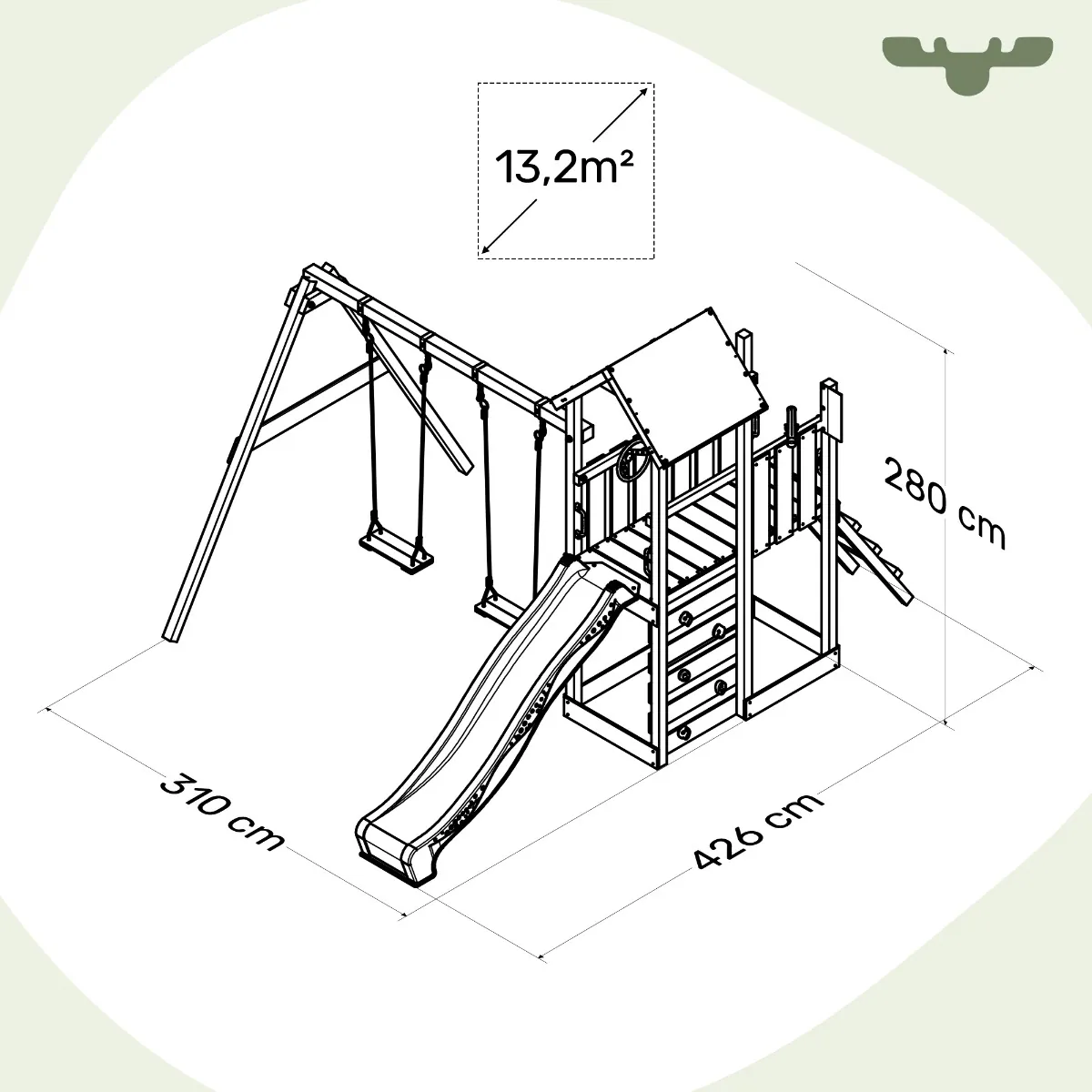 Er komt nog meer leven in je tuin met de MagicMango Move XXL van HC Huis & Tuin – de allrounder onder de speeltoestellen. Schommel met je beste vriend en kijk wie er het hoogste komt of beklim het platform via de schuine klimladder. Echte klimexperts bewijzen hun vaardigheden aan de lastige klimwand.