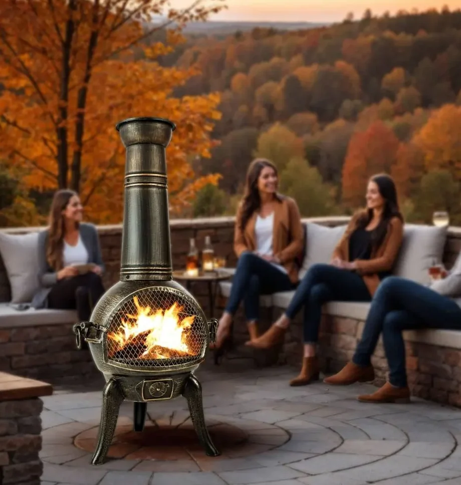 Laat je inspireren door de nostalgische charme van onze driepotige terraskachel! Met zijn rustieke ontwerp geeft het je terras een uitnodigende retro-look. Dankzij de handige, meegeleverde pook ontsteek je het gezellige vuur moeiteloos. De afsluitbare deur met vonkenscherm zorgt voor een hoge veiligheid.