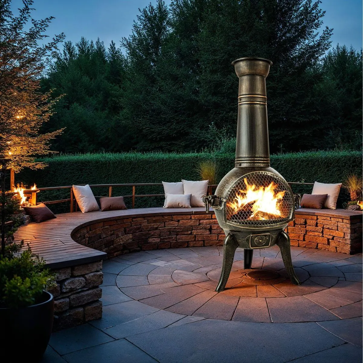 Met zijn grote vuurkorf biedt onze gezellige tuinhaard voldoende ruimte voor brandstof. Het uitneembare rooster draagt niet alleen bij aan een voldoende zuurstoftoevoer voor de gloed, maar vergemakkelijkt ook de reiniging. De constructie van gietijzer en staal kenmerkt zich door zijn stabiliteit en hittebestendigheid.