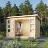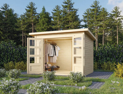 Met een zijhoogte van 172 cm en een nokhoogte van 197 cm biedt het gereedschapshuisje optimaal gebruik van de ruimte. Het tuinhuis zonder aanbouw heeft een basismaat van 242 cm x 182 cm. Vloerbalken bieden bescherming van onderaf en worden onder het tuinhuis gelegd.