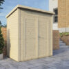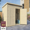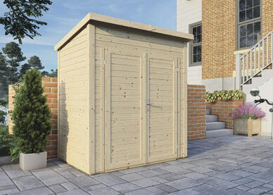 Creëer een droge opbergplaats voor tuinmeubelen of gereedschap die zelfs in een kleine voortuin past. Het compacte tuinhuisje is 181 cm breed en 121 cm diep. Met een wanddikte van 19 mm past het elegante lessenaarsdak precies daar waar het nodig is – afhankelijk van de behoefte naar voren of naar achteren gekanteld. Met de robuuste gereedschapsschuur en de handige dubbele deur creëer je in een handomdraai orde in je groene oase. Naast de praktische dubbele deur omvat de leveringsomvang een profielcilinderslot, beslag voor de deur, bevestigingssets voor het dak en de vurenhouten vloer.