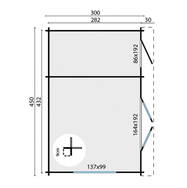 Opbouw variant Het zijraam kan ook in de tegenoverstaande wand geplaatst worden, Kan gespiegeld opgebouwd worden