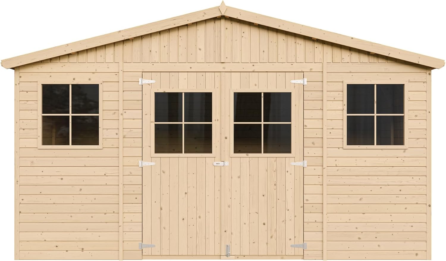 Dankzij de dubbele deuren met een openingshoogte van 1,76 m berg je je spullen eenvoudig op in deze houten schuur. De twee vensters van organisch glas bieden helderheid en zichtbaarheid. Voor extra veiligheid wordt het geleverd met een deurbout. Robuuste bekledingspanelen bekleed met hoogwaardig Scandinavisch dennenhout met 17 mm dikke panelen. Perfect als zomerhuis. Dankzij de dubbele deuren en ramen van organisch glas met veel natuurlijk licht is dit tuinhuis een prachtig zomerhuis.