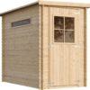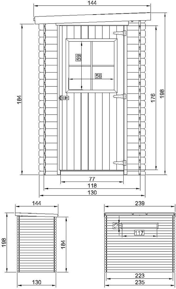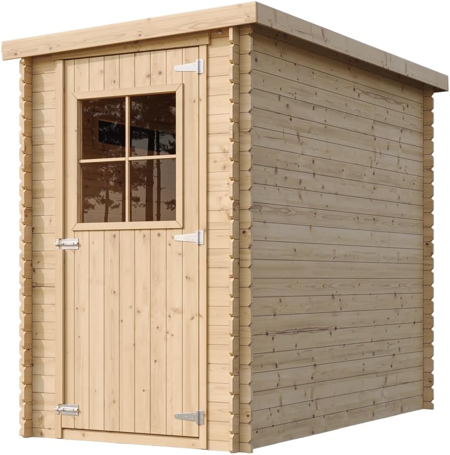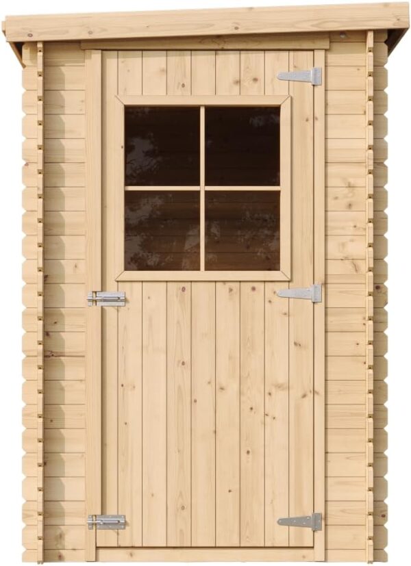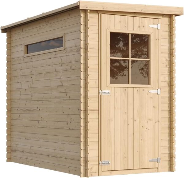 Extra accessoires: de bitumen dakbedekking die wordt meegeleverd, is alleen bedoeld voor kortstondig gebruik, voor extra bescherming bieden wij bitumen shingles als dakbedekking. Bovendien kun je het aanbevolen houtsnimpregnemiddel op waterbasis kopen en daarmee onze houtproducten behandelen. Deze tuinschuur kan met of zonder geïmpregneerde vloer worden gekocht.