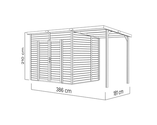 Tuinhuis Theo – 386×181 cm – Onbehandeld – Incl. vloer