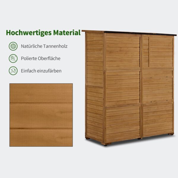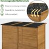 Inklapbaar tafelblad: de houten tuinkast heeft een uitklapbare tafel, ideaal als tijdelijke werktafel voor kleine gereedschappen, bloempotten en andere voorwerpen, in de tuin of elders. Uitstekende bescherming tegen weersinvloeden: het hellende dak van de tuinkast is bedekt met bitumenbanen, die de tuinkast beschermen tegen uv-straling en ophoping van regenwater; het houten huis is perfect geschikt voor buiten, bijv. tuin, balkon, terras