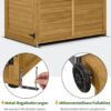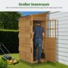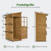 Ruime binnenruimte: Dankzij de ruime, beloopbare binnen ruimte kunt u de tuinkast betreden en uw gereedschappen gemakkelijk organiseren; met 3 vaste planken biedt de buitenkast een praktische opbergoplossing voor uw tuin gereedschap (binnen afmetingen: 104×65×187 cm). Uitstekende bescherming tegen weersinvloeden: het tuinhuisje is bedekt met een neer gekanteld asfalt dak, dat uv-stralen en waterophoping voorkomt; de verbrede dakrand beschermt de deur tegen regen, waardoor de gereedschapsschuur ideaal is voor gebruik buitenshuis