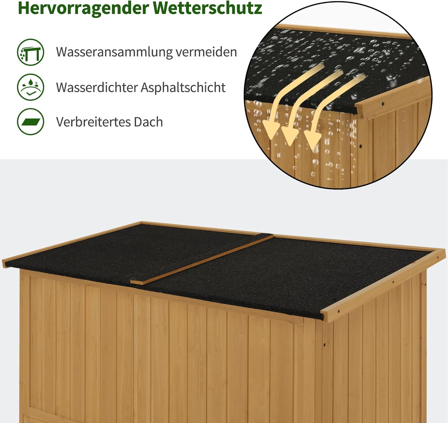 Materiaal: dennenhout/asfaltdak/metaal.