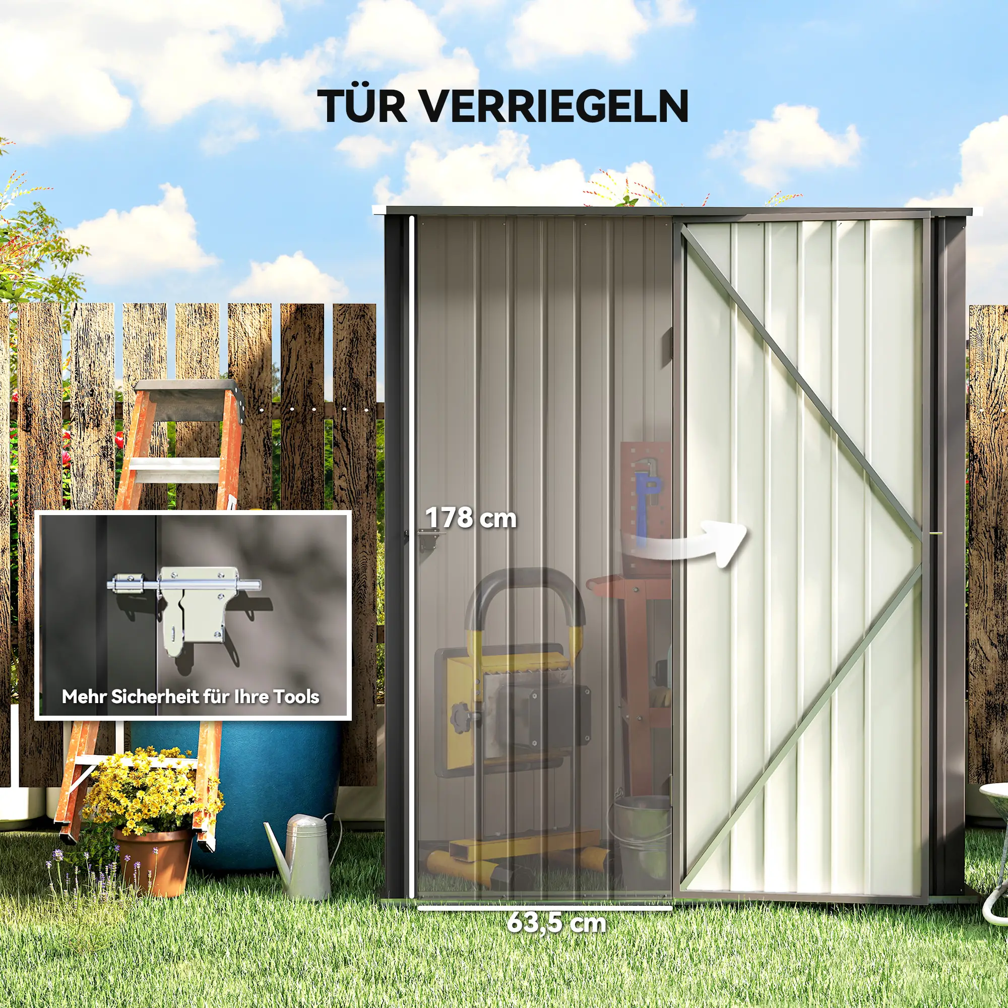 Gegolfd staalconstructie: Gegalvaniseerd voor extra sterkte, deze metalen werktuigenschuur is stevig en stabiel, geschikt voor buitengebruik. Waterafstotend oppervlak voor extra bescherming