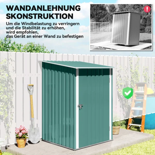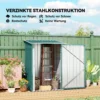 Robuuste constructie: De tuinschuur, gemaakt van 0,25 mm dikke, poedergecoate stalen plaat, beschermt uw waardevolle spullen effectief tegen het weer en garandeert langdurige corrosiebescherming in de tuinschuur voor betrouwbare buitenopslag.