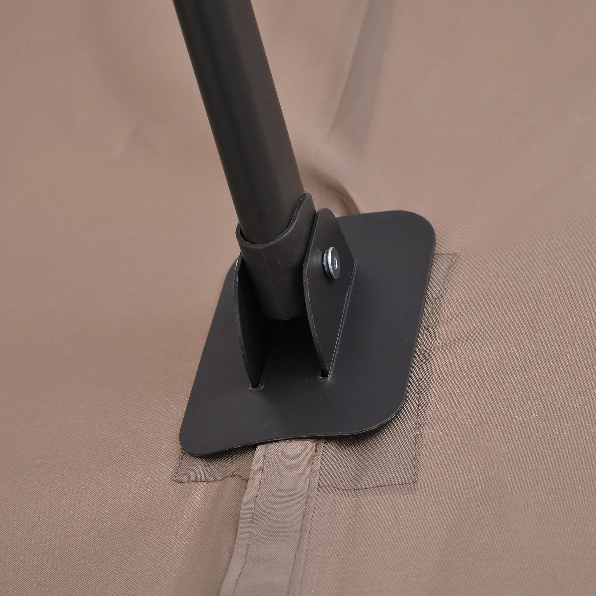 SLIM ONTWERP: 2 ventilatieopeningen beschermen de paraplu tegen omvallen en zorgen voor goede ventilatie. De paraplustandaard heeft een extra buigfunctie. OPMERKING: De parasolvoet vereist een tegengewicht van ongeveer 80 kg.
