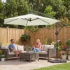 Extra stabiliteit: Het versterkte vergrendelingsmechanisme op de gebogen boom arm zorgt voor een vast bevestigingspunt dat uitglijden op deze cantilever parasol met krukas voorkomt en slingeren minimaliseert