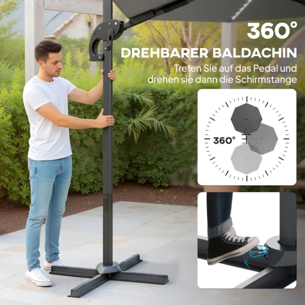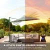 Veelzijdige schaduw: De 3(m) parasol garandeert langere schaduw en heeft een 360-graden rotatie en vier kantelopties, voor flexibiliteit en bescherming op elk moment van de dag.
